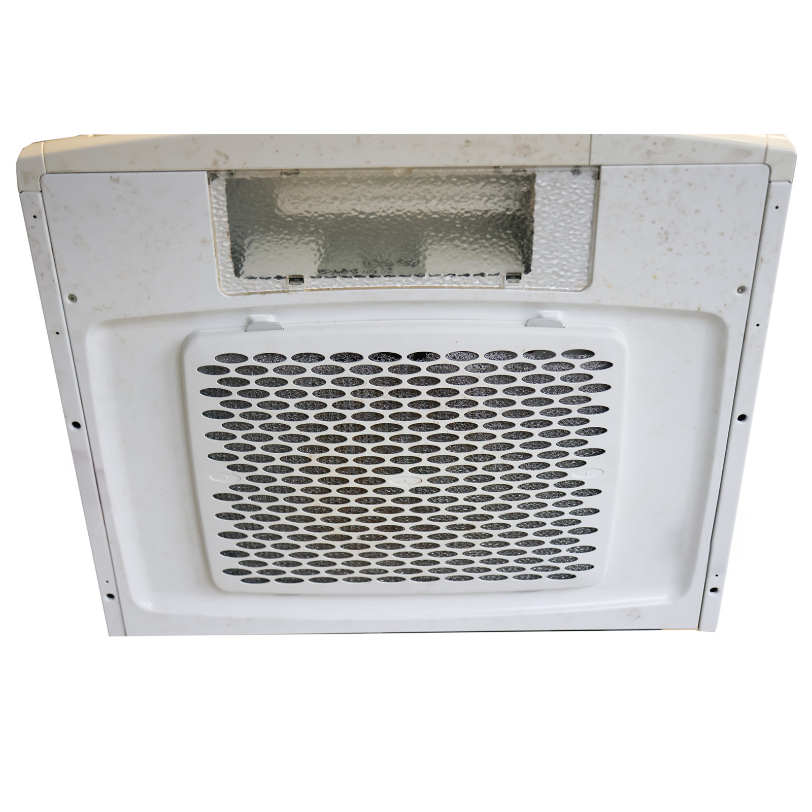 Suodatin on irrotettava ja puhdistettavissa. Käytön jälkiä näkyy erityisesti suodatinpinnassa, mutta tuuletin on ehjä ja toimintakunnossa.