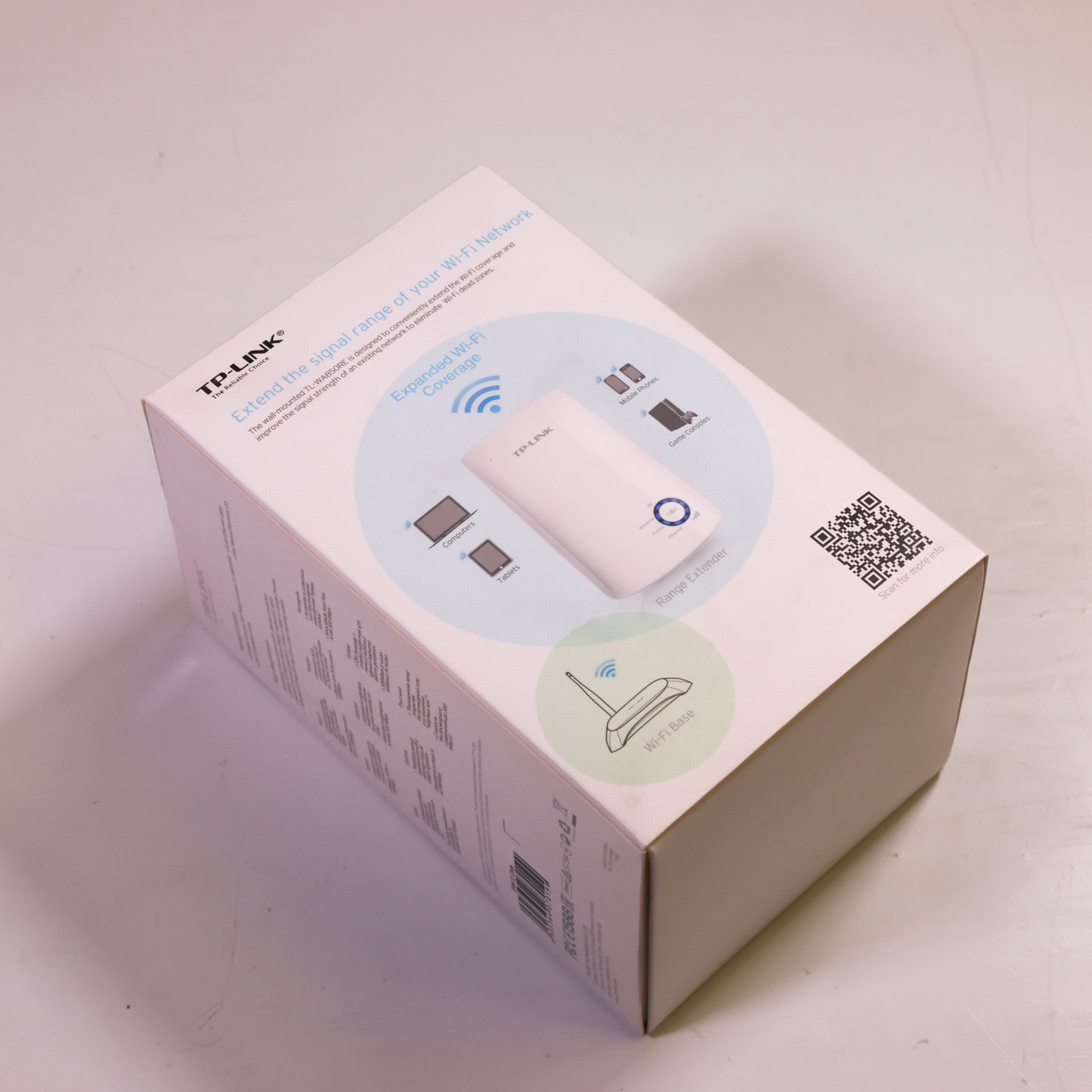 TP-Link TL-WA850RE on 300 Mbps Wi-Fi -laajennin, joka vahvistaa ja laajentaa langattoman verkon signaalia alueille, joihin reitittimen peitto ei yksin riitä. Laitteen pieni koko ja seinäkiinnitys tekevät sen sijoittamisesta joustavaa. Range Extender -painikkeella verkon kattavuutta voi laajentaa yhdellä painalluksella. Ethernet-portti mahdollistaa käytön langattomana sovittimena, jolloin myös kaapelilla liitetyt laitteet saavat Wi-Fi-yhteyden.
