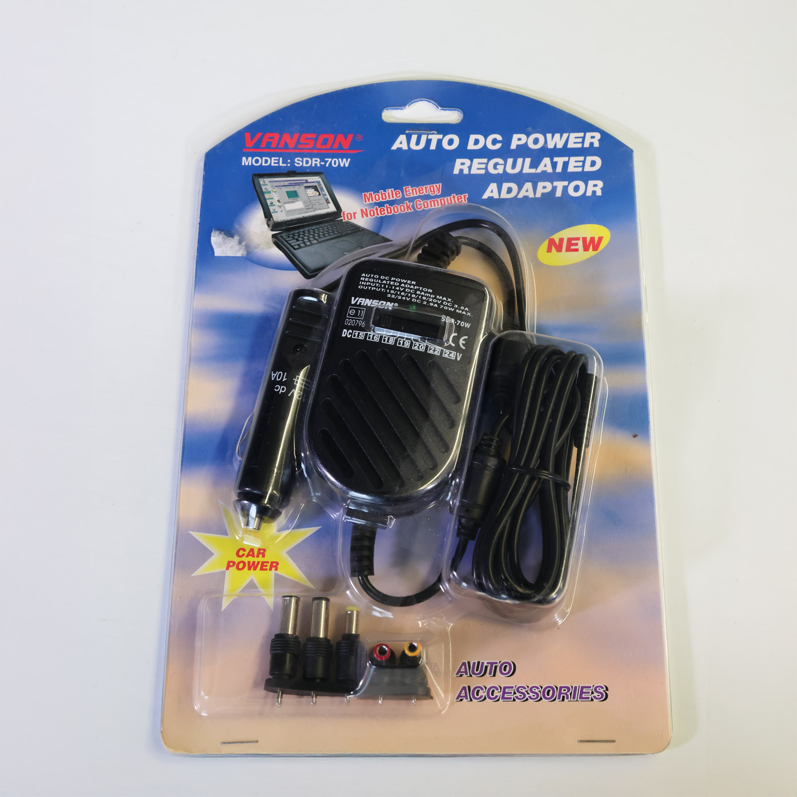 Vanson SDR-70W on auton tupakansytytinliitäntään kytkettävä universaali DC-laturi, joka tarjoaa säädettävän 15–24 V ulostulon ja enintään 70 W tehon kannettaville tietokoneille ja muille laitteille.